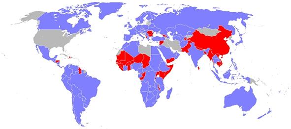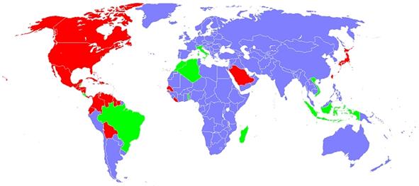 “Voltaggio Misto” classifica i paesi dove il voltaggio differisce tra città e/o regioni.