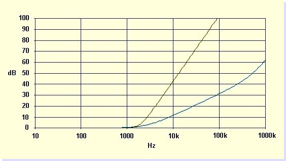 BlackNoise Extreme - Attenuazione in db alle varie frequenze.  Impedenza standard ingresso/uscita 50/50 ohm